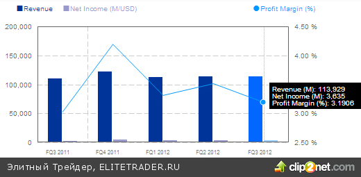 Сезон отчетов вчера продолжили публикациями своих финрезультатов гиганты потребительского и IT-сектора Wal-Mart Stores и Dell Inc. Крупнейшая в мире розничная сеть сообщила о росте объема продаж на 3,4% до $ 113,9 млрд. за третий квартал, против ожидаемых $114,96 млрд. Прибыль на акцию от продолжающихся операций минимально превысила прогнозы на 1 цент составив $1,08, что на 11,3% больше, чем в третьем квартале прошлого года. Компания повысила прогноз в нижней части диапазона до $4,88-4,93 в расчете на акцию с ожидавшихся ранее $4,83-4,93, но рынок ждал большего, что привело к падению котировки акций компании более чем на 3%.