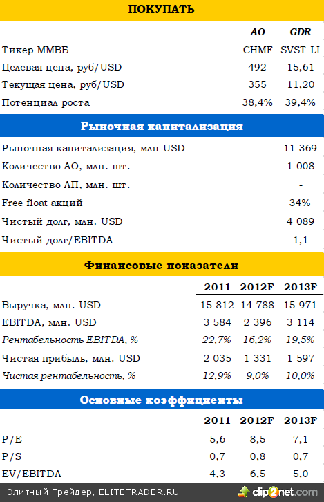 Мы оцениваем отчетность умеренно позитивно благодаря хорошей динамике чистой прибыли и грамотному управлению структурой выпуска. Улучшения в 4К12 не ожидаем. С учетом ситуации на рынке стали, мы пересмотрели наши прогнозы в сторону понижения и снизили оценку справедливой стоимости до 492 рублей за акцию.