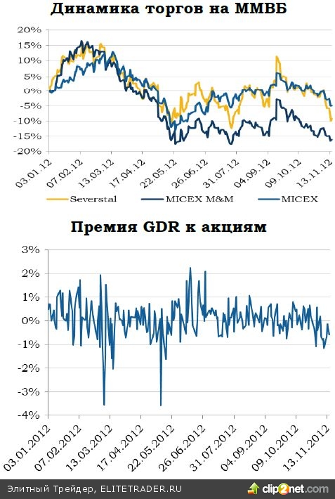 Очень хорошую динамику показала чистая прибыль – прибавив более 112%. $152 млн. составили доходы от курсовых разниц (переоценка валютных обязательств) при сопоставимых убытках по аналогичной статье кварталом ранее. В результате чистая рентабельность по итогам 9М12 составила 8,3% - и это лучший показатель в отрасли. Это должно положительно отразиться на дивидендах Северстали, хотя акции компании и не славятся высокой дивидендной доходностью. По итогам 9М12 совет директоров рекомендовал выплатить промежуточные дивиденды по 3,18 рублей на акцию.