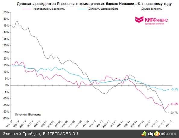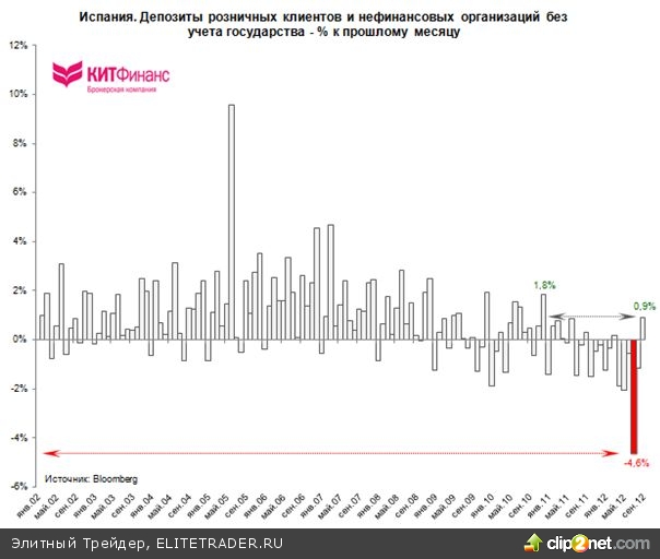 Но! В сентябре 2012 г., впервые за последние 6 месяцев, банковская система Испании зафиксировала приток средств на депозитные счета. Это хороший знак.