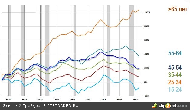 Реальный доход физических лиц США по возрастным группам: