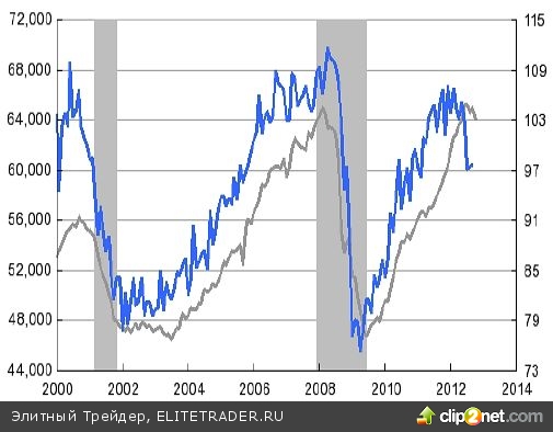 Заказы на гражданские товары длительного пользования за исключением самолетов, млн.долл., ЛО, индекс производства оборудования для бизнеса, ПО. Доказательство того, что любое ослабление стимулов чревато. Отсюда – боязнь налогового обрыва и нежелание водить Basel III с 01.2013.