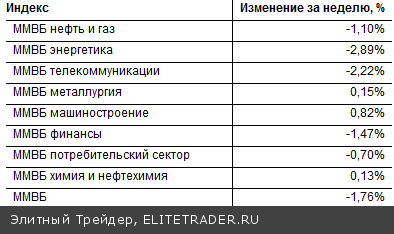 Динамика отраслевых индексов за неделю