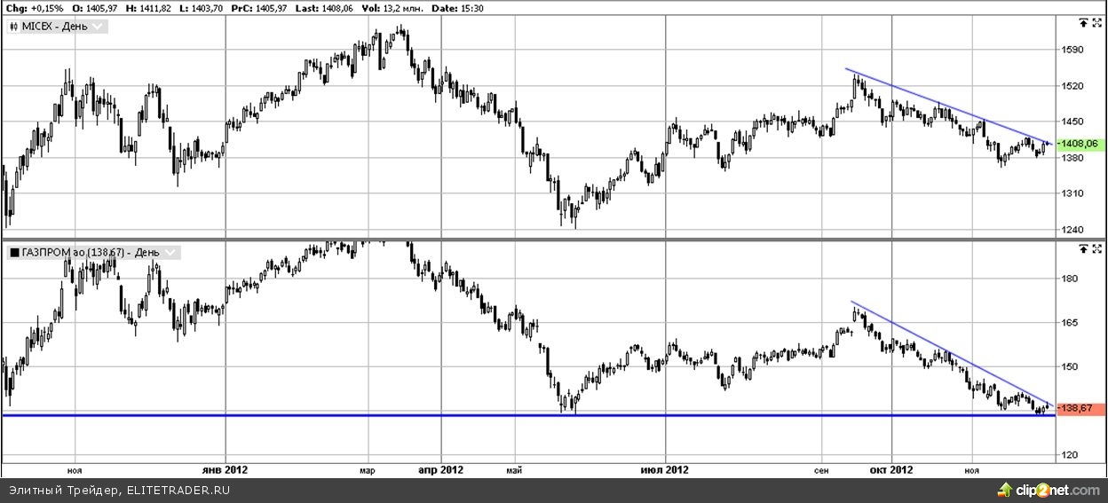 Будет ли рынок отыгрывать предновогоднее ралли сейчас большой вопрос. Это отнюдь не обязанностью. Возможность роста крайне мала,но если это произойдет, сценарий роста до 155 руб. мы закладываем. Начало 2013 года будет ознаменовано ключевым событием для рынков, а именно решением или задержкой в принятии решений по сокращению расходов и налоговым послаблениям в США. Это определит настрой инвесторов на начало года. Не исключением станут и акции Газпрома. Для поиска альтернатив возможные варианты представлены акциями Транснефть, МТС, Сургутнефтегаз (привилегированные).