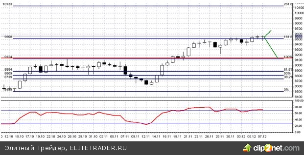 Основная рекомендация: в случае возврата индекса ниже уровня 9 500 следует открывать короткие позиции в диапазоне 9 400 -9 450, с целью фиксации прибыли в близи ближайшего уровня поддержки в районе 9 150. Стоп-лосс выставить выше уровня 9 500.