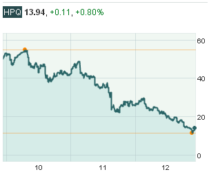 Эй, вы, независимые эксперты, сколькие из вас прикидывают возможность купить акции HP, которые сейчас близки к 18-ти месячному минимуму? Сейчас даже непонятно, выживет ли компания. Она оказалась худшей по производительности в этом году среди всех 30 Dow Industrials, обвалившись на 45%. Что это было? Есть предположения? Похоже, что худшие компании за год часто становятся лучшими в следующем.