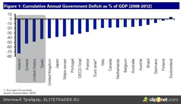 Эти 4 страны (Ирландия, Греция, Испания и США) за последние 4 года аккумулировали крупнейший бюджетный дефицит в % от ВВП