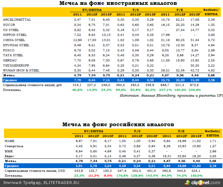 Сравнительный анализ по-прежнему отражает относительно невысокую стоимость Мечела, при этом компания должна значительно преобразиться после распродажи активов, и даже незначительные улучшения на рынке могут существенно упрочить ее положение.