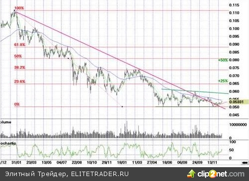 Свободные средства в портфеле еще есть. И хочется попробовать разместить их в акциях "Газпрома" при удержании 140 рублей, в бумагах "ФСК ЕЭС" при укреплении выше 0,22 рубля, в бумагах ГМК "Норильский никель" от уровня 5000 рублей, или в акциях ВТБ выше уровня 0,53-0,5319. Кстати, по силе концентрации "бычьих" сигналов из популярных бумаг, близких к минимумам года, я бы как раз выделила "ВТБ".