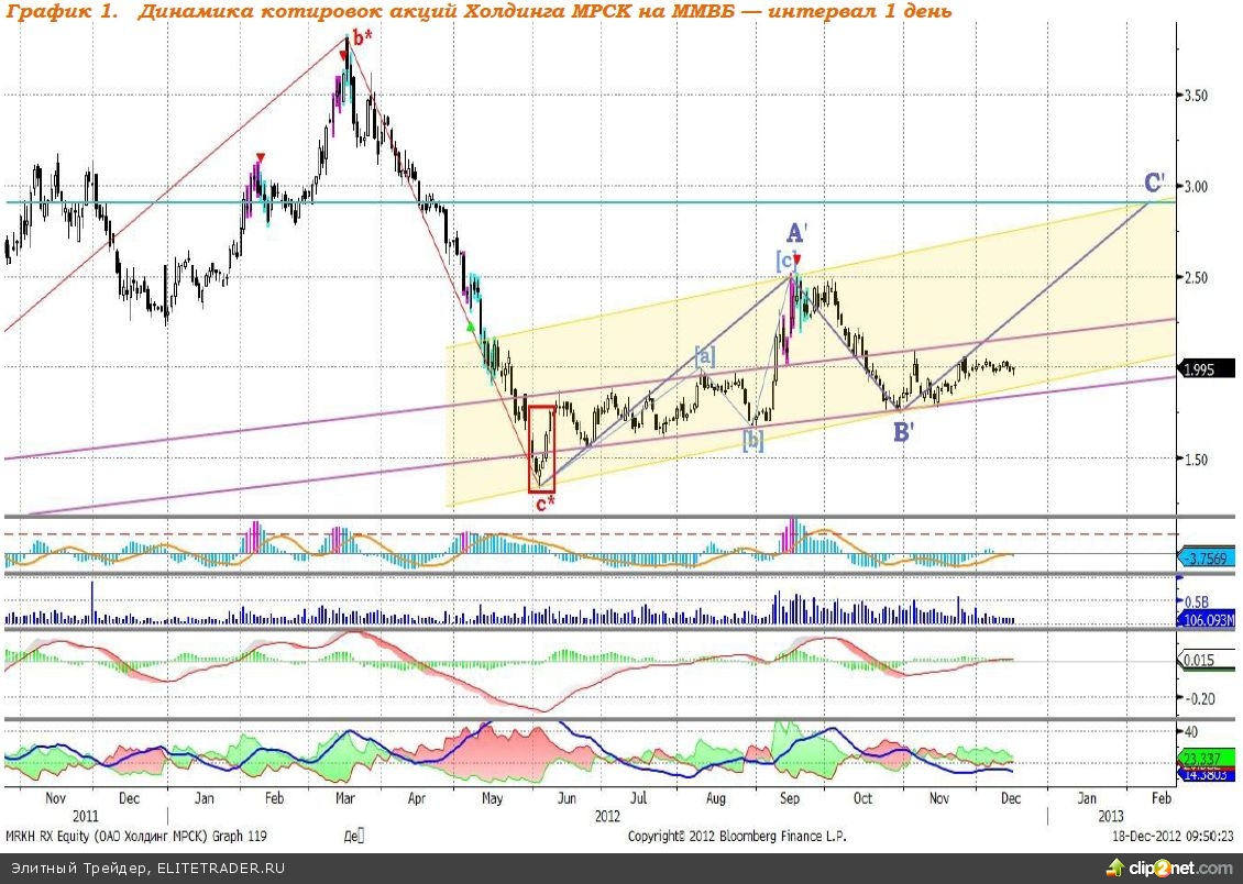 Как уже указывали выше, исходя из структуры, предполагаем, рост стоимости акций Холдинга МРСК в течение ближайших 2-3 месяцев к отметке 2,9000 рубля (+45%). Однако, традиционно, котировки компаний российского электроэнергетического комплекса носят неустойчивый характер.