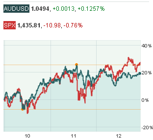 С 2009 года курс австралийского доллара против американской валюты показал более 75% корреляции в движении с S&P 500 по данным исследования HSBC. Рисковая/безрисковая торговля последних лет сама по себе во многом была связана с инъекциями ликвидности ЦБ на финансовые рынки, где сам вес денег создавал собственную торговую силу. Деньги нашли пристанище во многих активах, поднимая цены вверх. И даже если спрос на риски укрепляется, нет явных признаков того, что осси будет расти, учитывая популярность в последнее время среди инвесторов. Возглавляет список возможных событий, которые могут вызвать разворот настроений инвесторов, фискальный обрыв в США, а также ухудшение долгового кризиса Европы, либо же новый спад глобального роста.
