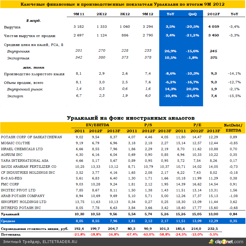 Результаты 9 месяцев показали рост в годовом сравнении за счет сильных итогов первых двух кварталов 2012 года: компания работала с высокой загрузкой мощностей, и мировые цены на калий держались на высоких уровнях.