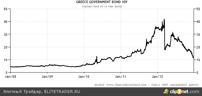 Многочисленные страхи по поводу обострения долговых проблем в еврозоне подтвердились, но были успешно решены, по крайней мере, в этом уходящем 2012-ом году. Наиболее уязвимой точкой на карте Старого Света была Греция. Постоянно с завидной регулярностью крупнейшие финансовые аналитики, экономисты, официальные лица ЕС и порой даже главы европейских центробанков делали громкие и невеселые прогнозы о скорейшем и неизбежном выходе Греции из зоны евро. Даже появился специальный термин - «Grexit».