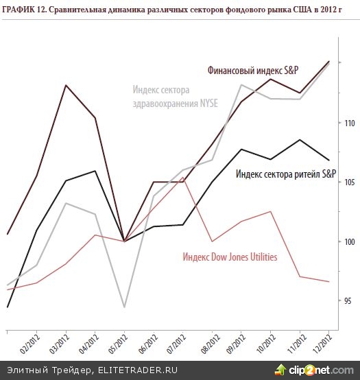 Всё вышесказанное можно суммировать нижеприведённой таблицей, которая иллюстрирует ожидаемую динамику американских акций в 1-м кв. 2013 года в разрезе отдельных секторов.