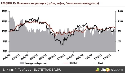 • Дефицит банковской ликвидности. Банки сейчас далеко не избалованы излишками банковской ликвидности. Мы видим сохраняющиеся на высоком уровне межбанковские ставки. Пока не появилось намеков на то, что ситуация кардинально улучшится в предстоящем квартале. Вот и Банк России в конце года озвучил прогноз о сохранении достаточно больших объемов дефицита средств у банков в первом квартале 2013 года. Заместитель председателя Банка России Сергей Швецов также напомнил о том, что задолженность банков сейчас составляет около 600-700 млрд рублей, значительный её объём будет перенесен через новогодний экватор. Другими словами, возможно, будет чуть попроще, однако банки все равно будут оперировать в сжатых ликвидных рамках.