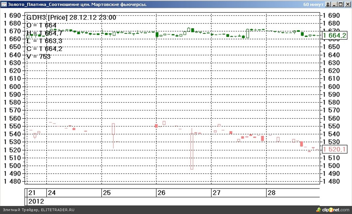 К завершению последней недели ушедшего года контракты на платину несколько увеличили свое отставание от фьючерсов на золото. Разница цен в мартовских контрактах расширилась до $144 за унцию. Таким образом, текущий спрэд составляет около 8.7%.
