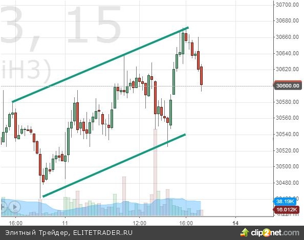 Во фьючерсе SiH3 также наблюдался флэт в граница 30 500 - 30 700 пунктов. На 15-минутном тайм-фрейме мы видим фигуру, похожую на "флаг" (рисунок 1).