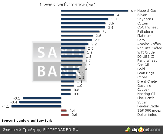 Особенно сильный прирост был зафиксирован на рынке природного газа, который начал восстанавливаться после падения, вызванного более мягкой, чем ожидалось, зимой, а дополнительную поддержку оказало неожиданно сильное сокращение запасов газа в США, что указывает на высокий спрос. Платина и палладий укрепились на фоне новости о том, что добыча платины в ЮАР будет сокращаться. В результате игроки снова переключили внимание на возможное падение предложения в период высокого спроса в автомобильной промышленности, особенно в странах Дальневосточного региона и в США. По этой причине цена платины впервые с марта 2012 года вернулась к уровню паритета с золотом.