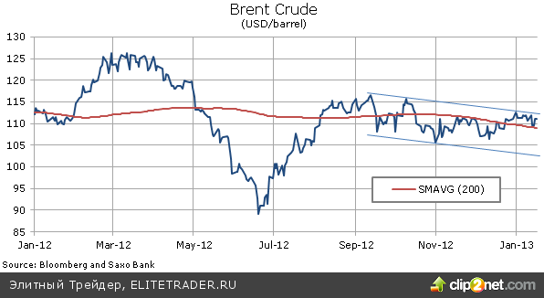 Энергетический сектор в целом укрепился, потому что на горизонте вновь замаячил риск роста цен, связанный с геополитическими событиями. Внимание участников рынка сейчас приковано к захвату заложников в Алжире, который поставил под угрозу безопасность энергетической инфраструктуры в стране, с помощью которой ежедневно добывается 1,4 миллиона баррелей. Нефть сорта Brent вернулась в верхнюю часть текущего диапазона, но ей не хватило сил преодолеть сопротивление, которое сейчас проходит по линии январского максимума на уровне 113,30 долларов за баррель. Поддержка находится в области 200-дневной скользящей средней на отметке 109 долларов.