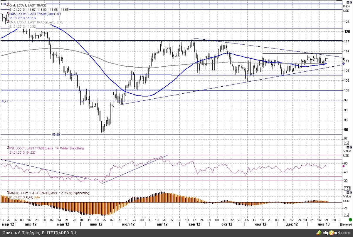 Нефтяные котировки к сегодняшнему дню подошли практически на тех же уровнях, где и начинали этот год (речь идет в первую очередь о цене Brent). Фьючерсы все также торгуются в рамках своего бокового диапазона, волатильность заметно снизилась. Границы коридора сохраняются на уровнях $106,5-113.