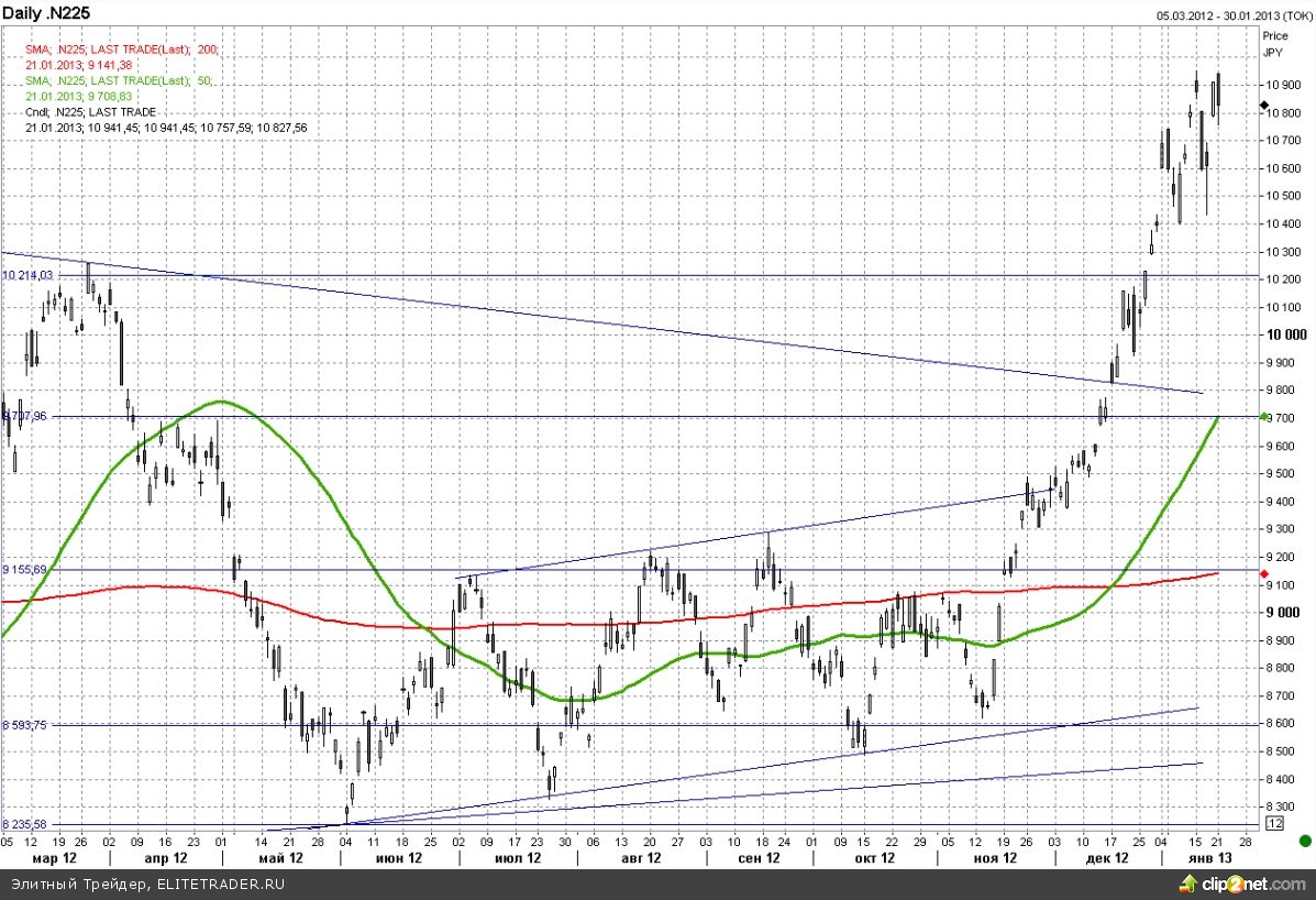 Относительно КНР сегодня идут разговоры о перспективах ослабления денежно - кредитной политики, хотя существенных причин для этого пока нет. Рост экономики остается лучше ожиданий, вот только инфляция к концу года несколько ускорилась. Банковский сектор в Китае сегодня торгуется хуже рынка, так Industrial and Commercial Bank of China и China Construction Bank теряют 0,7% и 1% соответственно. При этом нельзя не отметить, что гонконгский индекс Hang Seng вновь обновил свой долгосрочный максимум и сейчас находится на уровнях первой половины 2011 года.