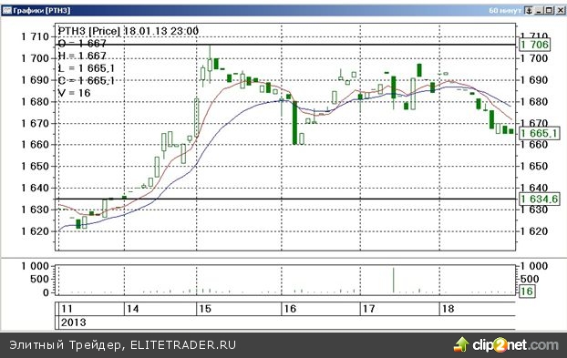 Мартовские фьючерсы на платину (PTH3, +2.10%), как и контракты на «менее благородные» драгоценные металлы, завершили неделю с повышением. В минувший вторник эти контракты сумели обновить свой четырёхмесячный максимум, достигнув отметки в 1706 долларов. Тем не менее, к завершению торговой недели платина растеряла существенную часть своего недавнего стремительного прироста. Вероятно, в ближайшие дни последуют новые попытки преодоления образовавшегося в районе 1700 долларов сопротивления.