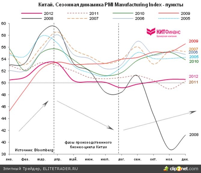 После февральского спада (по случаю празднования китайского Нового года по лунному календарю), как правило, наблюдаются пики деловой активности в обрабатывающих отраслях Китая.