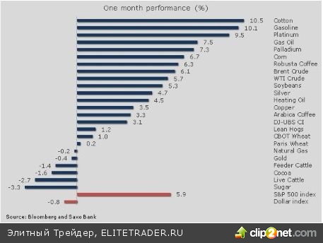 Серебро показало, на что оно способно, обладая двойной ролью в качестве инвестиционного инструмента и промышленного металла. Металл смог обогнать по динамике золото, учитывая, что сейчас все внимание игроков приковано к потенциалу роста экономики США и Китая. За последний месяц разница в цене между этими двумя металлами опустилась в нижнюю часть диапазона, и теперь одна унция золота стоит 52,4 унции серебра по сравнению с 55 месяцем ранее.