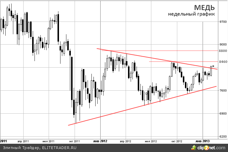 За прошедшую неделю цена меди достигла 4-х месячного максимума, свинец, олово, алюминий, никель тоже растут. Сигналы восстановления экономик США и Китая открывают хорошие перспективы всей группе промышленных металлов на первое полугодие 2013 года.