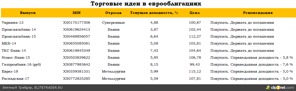 МКБ-14 (евробонд интересен в качество «защитного» инструмента в период повышенной волатильности на рынке, который наблюдается сейчас).