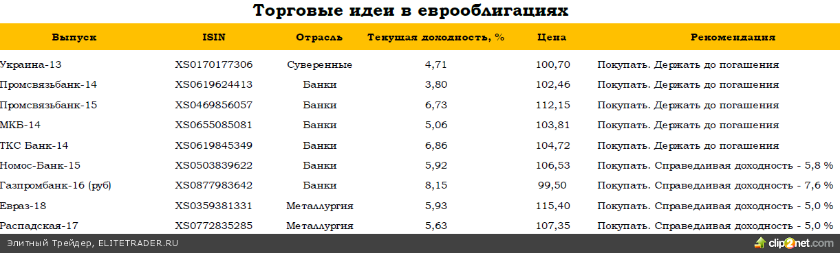МКБ-14 (евробонд интересен в качество «защитного» инструмента в период повышенной волатильности на рынке, который наблюдается сейчас).