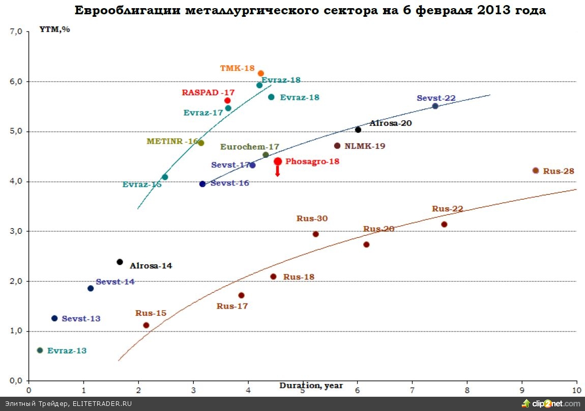 В ближайшие дни один из крупнейших в мире производителей фосфорсодержащих удобрений - ОАО «Фосагро» планирует закрыть сделку по размещению дебютных еврооблигаций. К настоящему моменту основные параметры выпуска уже известны. В частности, компания планирует занять $500,0 млн. сроком на 5 лет. Ориентир по доходности составляет 337,5 б.п. к долларовым свопам, что соответствует доходности в 4,41% годовых. Мы полагаем, что справедливый уровень доходности должен находится в районе 4,2-4,3% годовых (см. оценку займа). Таким образом, пока в выпуске есть небольшая премия, в районе 10-20 б.п. и мы рекомендуем участвовать в размещении