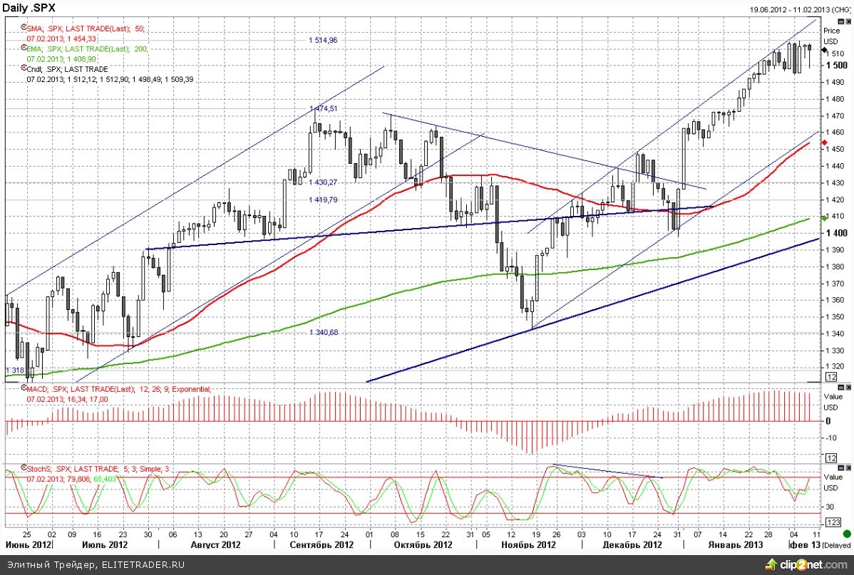 Несколько пошатнули позиции быков на текущей неделе вести из Европы, где лидеры испанской оппозиции требуют отставки нынешнего премьера Мариано Рахоя, обвиненного в конце прошлой неделе в получении взяток из секретного фонда, учрежденного группой крупных бизнесменов. К настоящему моменту петицию за отставку Рахоя подписали более миллиона человек. В свою очередь в Италии негатива рисковым активам принесла речь бывшего премьер-министра Сильвио Берлускони о планируемой в случае победы на февральских парламентских выборах отмене антикризисного муниципального налога на недвижимость и даже компенсации выплаченных средства гражданам за 2012 год. Правда в этой истории есть еще один нюанс - средства на вышеназванные действия экс-премьер намерен изыскать со швейцарских счетов итальянских налоговых уклонистов, что последних как держателей различного рода активов должно было насторожить.