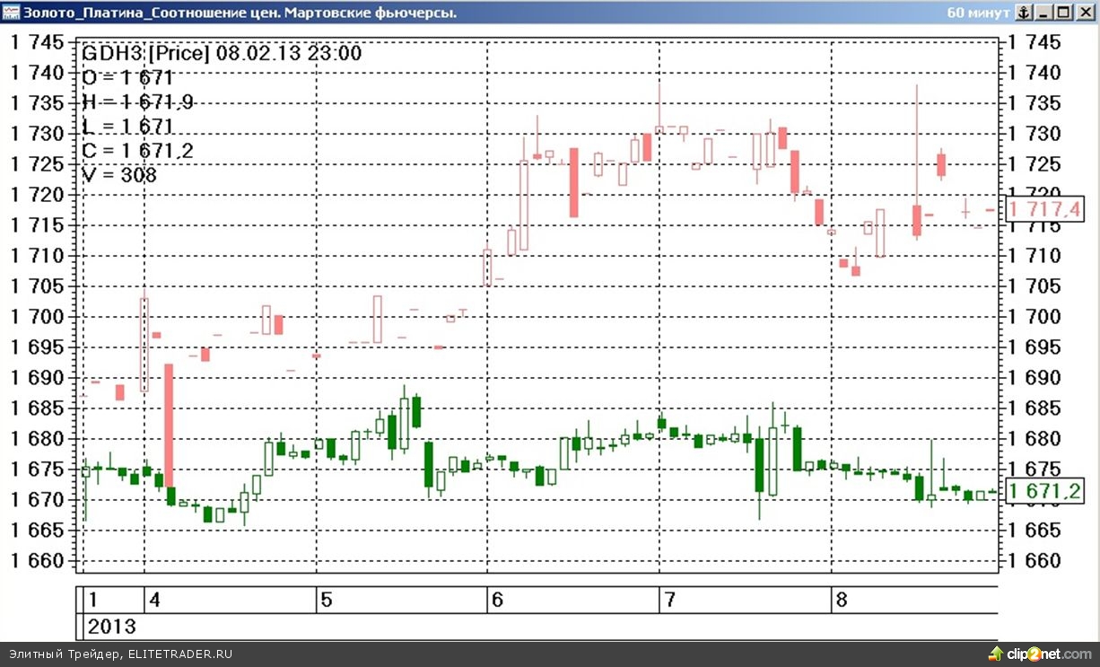 В течение всего предыдущего года платина торговалась заметно дешевле золота, что в долгосрочном периоде является достаточно редким событием. Платина исторически стоит значительно дороже «желтого металла», что обусловлено ее редкостью и более дорогой технологией производства. В начале 2013 года ценовой зазор между этими двумя благородными металлами сократился до минимума. К концу прошлой недели стоимость фьючерса на платину сумела заметно превысить стоимость контракта на золото. К завершению пятничных торгов разница цен в мартовских контрактах составила 46 долларов за унцию в пользу платины. Таким образом, текущий спрэд составляет около 2.8%.