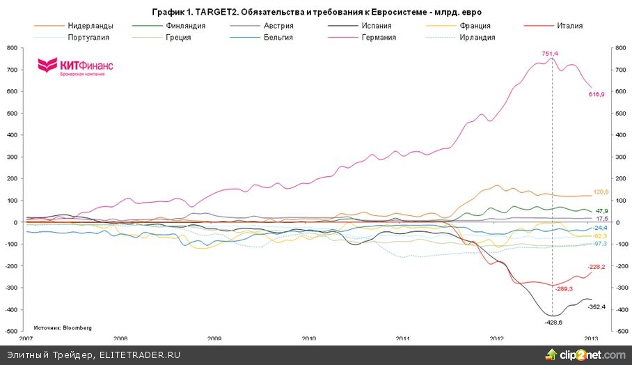 С июля 2012 г. по январь 2013 г. требования Бундесбанка к Евросистеме с рекордных €751,4 млрд. сократились до €616,9 млрд.(30% ВВП), т.е. на €134 млрд.