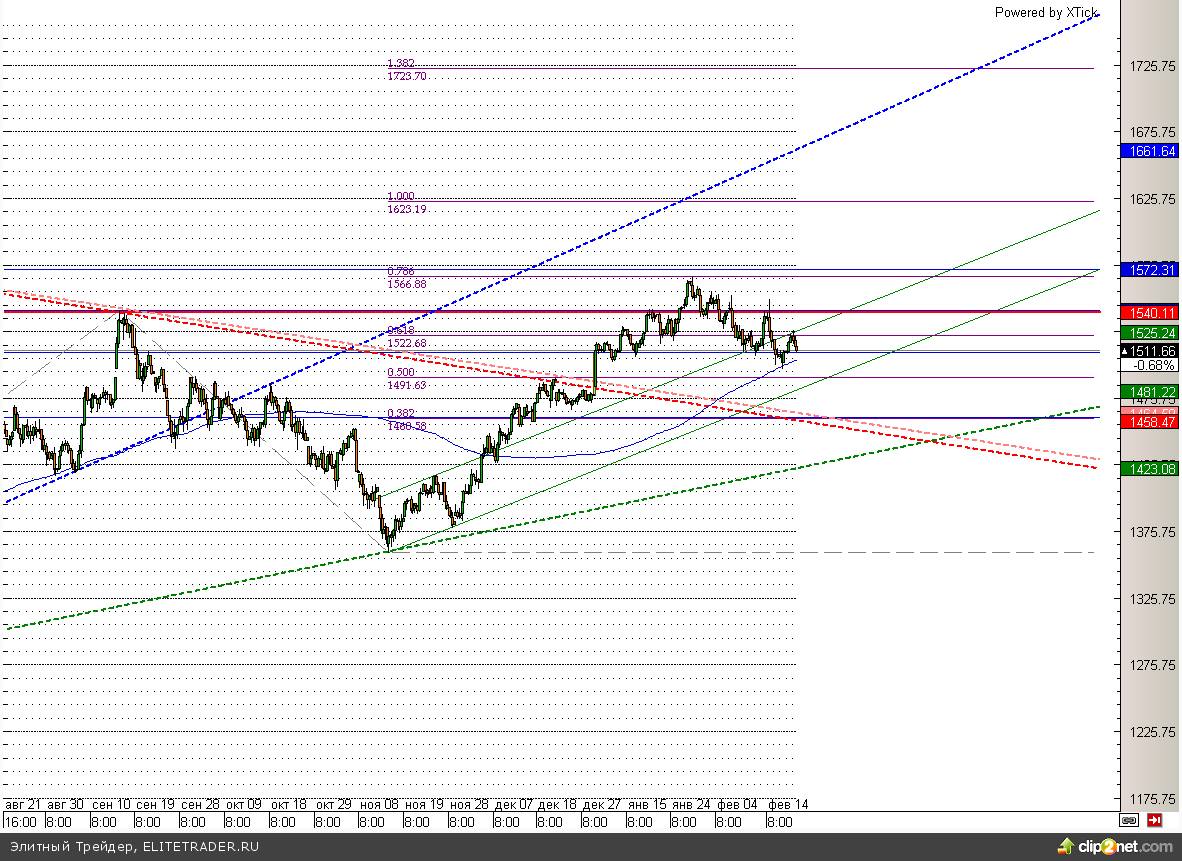 Техническая картина ММВБ продолжает оставаться умеренно негативной. Для того, чтобы она смотрела в положительную сторону индексу необходимо преодолеть отметку 1525. Между тем ближайшая цель снижения находится на отметке 1500, которая на этот раз может уже не устоять.
