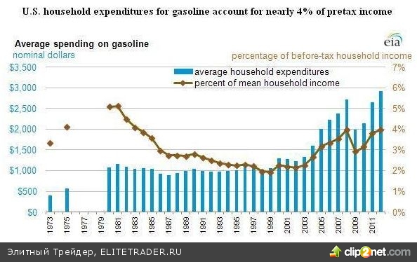 Как показывают данные EIA, расходы на бензин в 2012 году для среднего домохозяйства достигли отметки $2912 – около 4% годового дохода (до вычета налогов)