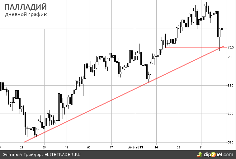 С технической точки зрения именно палладий вчера давал наилучшую точку для входа: после касания линии тренда последовал мгновенный рост на 3.5% за несколько часов.