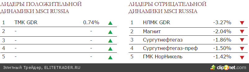 Сильнее рынка также торговались акции «Транснефти»-ап (TRNFP RM, +0.42%), «НОВАТЭК» (NVTK RM, +0.01%), АФК «Система» (AFKS RM, +1.83%), «Разгуляй» (GRAZ RM, +0.51%), «Росинтер» (ROST RM, +3.19%).