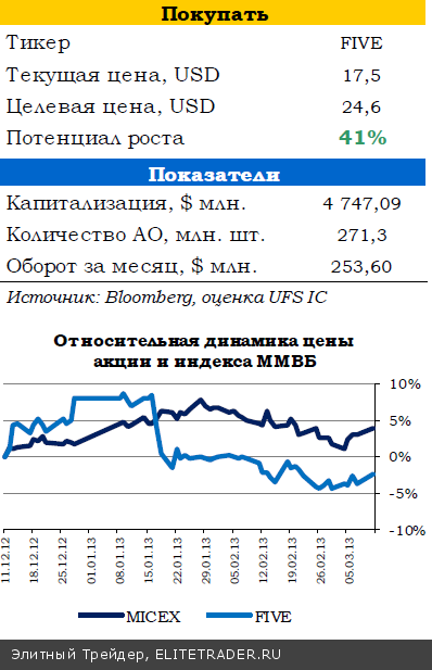В целом мы оцениваем отчетность как умеренно позитивную: она выглядит слабо, и выручка по итогам года выросла даже слабее, чем мы ожидали, но в целом ситуация в компании выглядит не так уж плохо. 4К12 показал ощутимые улучшения по всем направлениям, правда в основном это заслуга фактора сезонности. Сегодня руководство Х5 должно провести телеконференцию посвященную результатам 2012 и ожиданиям на текущий год. Мы ожидаем, что реакция в котировках ритейлера может быть позитивной.