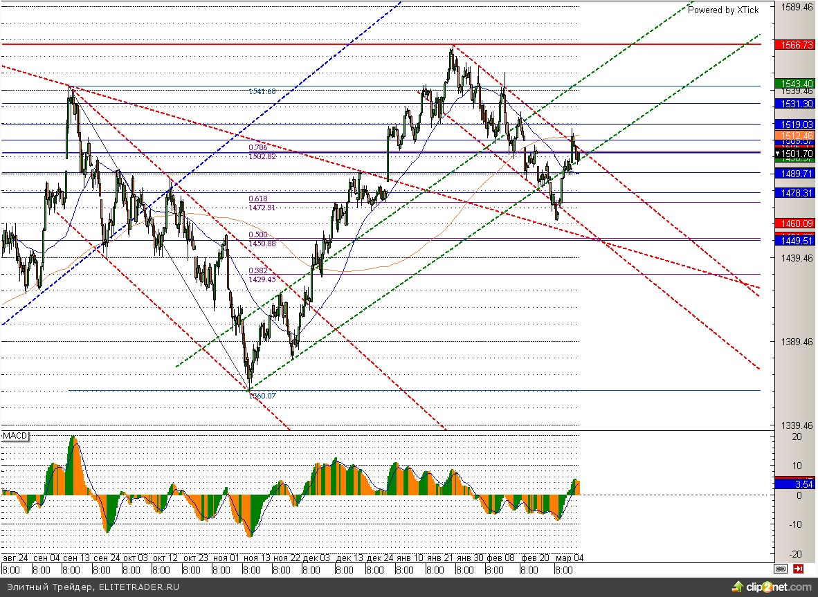 Техническая картина ММВБ со вчерашнего дня не изменилась. Пробой 1511 приведет индекс к 1540, а уход ниже 1490 поможет котировкам опуститься к 1460.