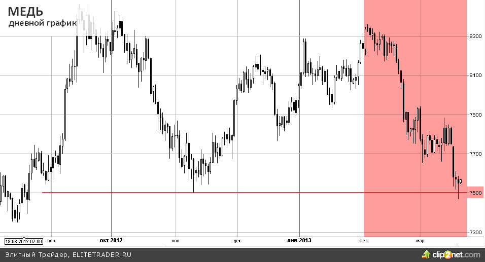 Сегодня медь прибавляет более 0.8%, после того как вчера был протестирован полугодовой минимум на уровне $7500 за тонну. Индекс 6-ти промышленных металлов, тем временем, показал вчера минимальное значение с середины ноября прошлого года.