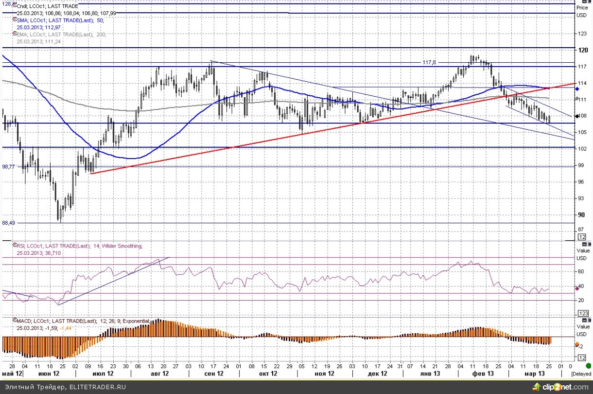 Цена на майские фьючерсы нефти марки Brent повысилась до $107,66 и прибавила 0,18%.