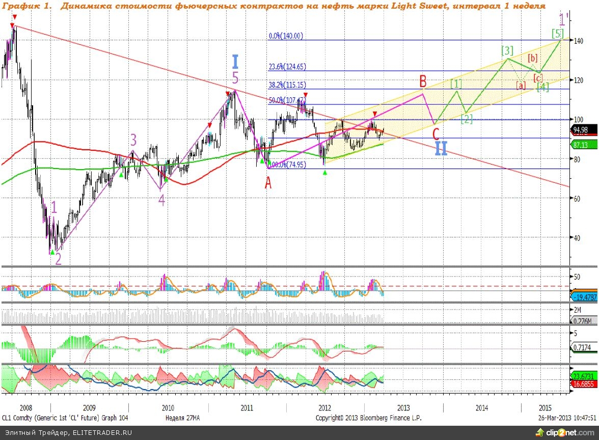 Рекомендуем: покупку фьючерсных контрактов на нефть марки Light Sweet по текущей цене ($95,00 за баррель) с целью продать на уровне $140,0 (+47,37%), стоп-приказ на уровне $92,00 (-3,16%). Временная перспектива — 27 месяцев.