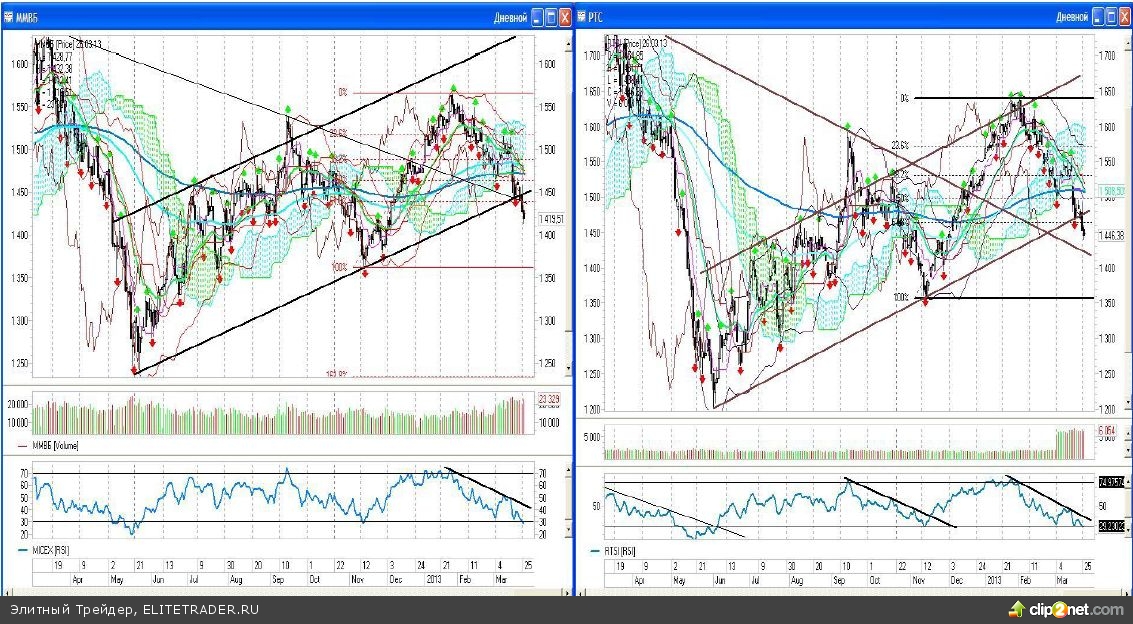 Нашим же игрокам пока остается уповать лишь на то, что вчерашний минимум не будет обновлен, и пока мы торгуемся под пробитым ранее 61,8% уровнем коррекции по Фибоначчи, перспективы нашего рынка неутешительны. Уровни 1440 пунктов по индексу ММВБ и 1460-1465 пунктов по индексу РТС теперь же выступают как ближайшие уровни сопротивления, и только их возврат сможет хоть как-то изменить техническую картину рынка.