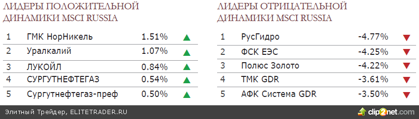 Лидером прироста среди голубых фишек стали акции ГМК «Норильский Никель» (GMKN RM, +1.38%). Эти бумаги сумели восстановиться после резкой просадки, состоявшейся под закрытие предыдущих торгов. Сигналом для краткосрочной волны распродаж, состоявшихся накануне, стала вскоре опровергнутая информационная «утка» о задержании российского миллиардера Романа Абрамовича в США. Негативная реакция участников торгов была связана с тем, что это событие могло бы поставить под угрозу соглашение о примирении между крупнейшими акционерами «Норникеля». Ранее «Интеррос» и «РУСАЛ» договорились об урегулировании корпоративного конфликта при посредничестве структур Абрамовича.