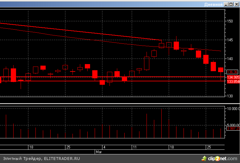 На дневном графике сегодня был отрисован "молот" с возрастающим объемом. Это повышает шансы на разворот. Однако для этого должен продолжиться локальный спрос и уже до конца недели мы должны выйти в район 139 руб. В противном случае, отскок будет залит продажами. Стоп для лонговых позиций в этом случае лучше разместить под уровень 134 рубля.