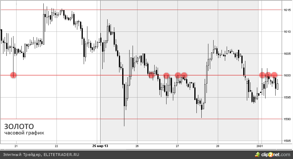 За прошедшую неделю цена золота стабилизировалась в диапазоне $1590-1615 за унцию на фоне постепенно разрешения "кипрской" проблемы и положительной статистики из Китая. Определенное давление на цену металла оказывает укрепляющийся доллар США.