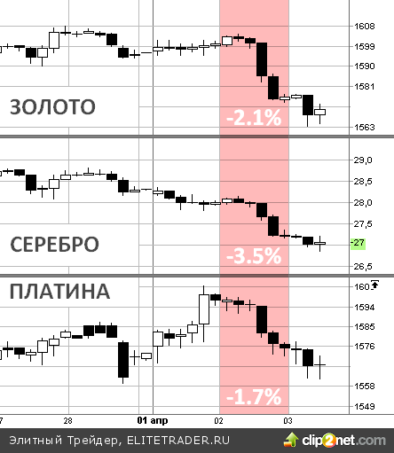 Котировки металлов к закрытию дня (02.04.13):