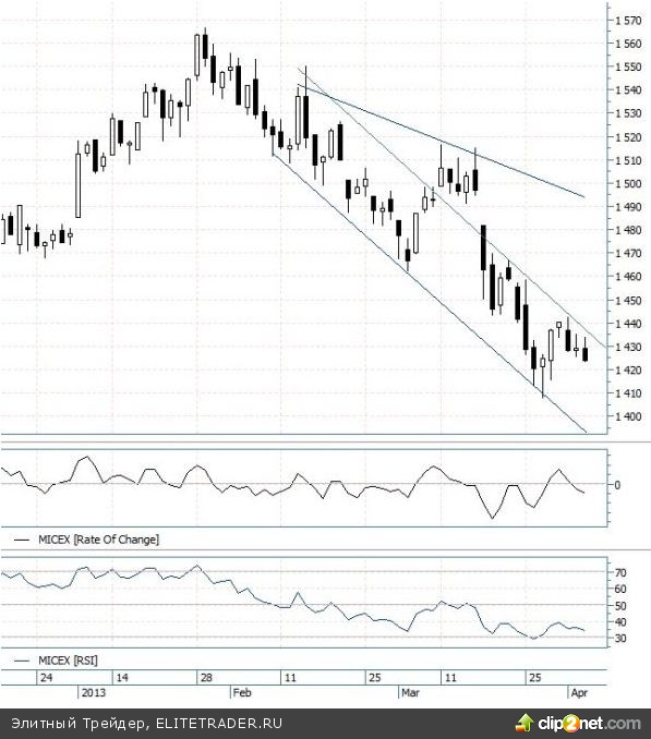 Оказавшись на фондовом рынке не у дел "биржевые быки", видимо, отправились на валютный рынок, где доллар США вчера обновил свои максимумы в этом году по отношению рублю на фоне традиционного сокращения продаж экспортной валютной выручки в начале месяца и квартала. Повод для игры на понижение рубля дали также данные по оттоку капитала из РФ, который в I квартале составил $25,8 млрд. по сравнению с $7,9 млрд. в IV квартале 2012 года и $56 млрд. за весь прошлый год. Таким образом, ориентир российской денежно-кредитной политики, предполагающий чистый отток капитала из РФ на уровне в $10 млрд за весь текущий год был двукратно перекрыт всего за три месяца. Это добавило пессимизма инвесторам на фоне наблюдавшегося вчера 3% падения цен на нефть марки Brent.